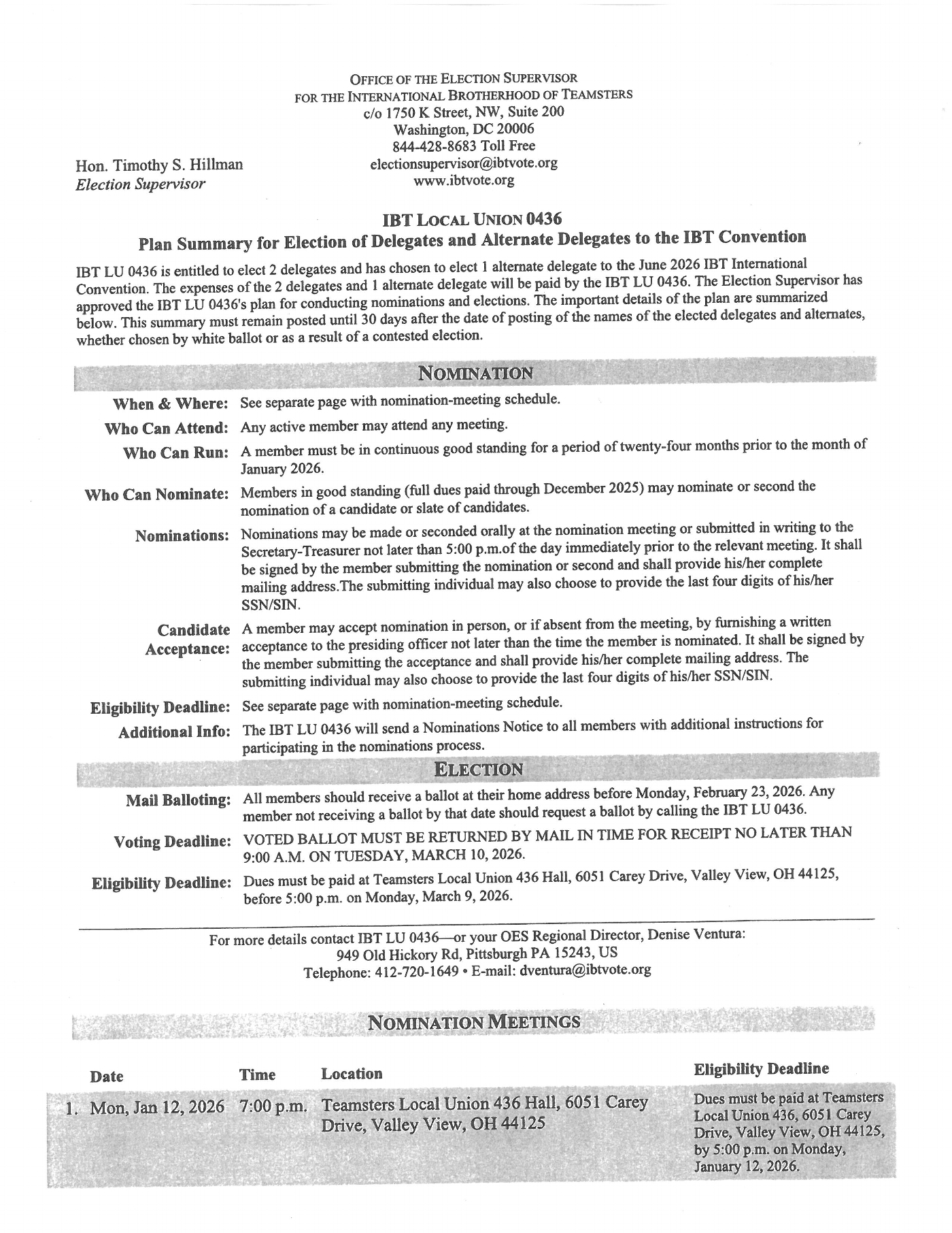 Election Plan Summary - Local 436 - Re- IBT Convention